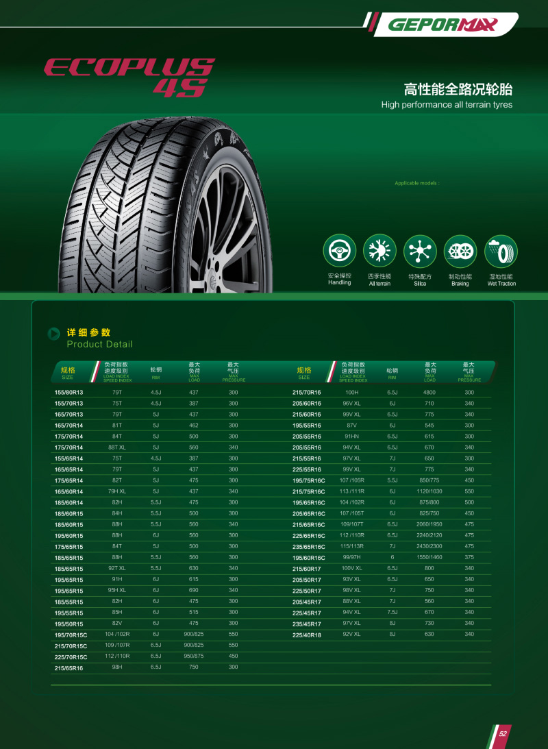 ECOPLUS 4S All season tires, special tread formula, suitable for snow and mud road conditions, effectively anti-skid.