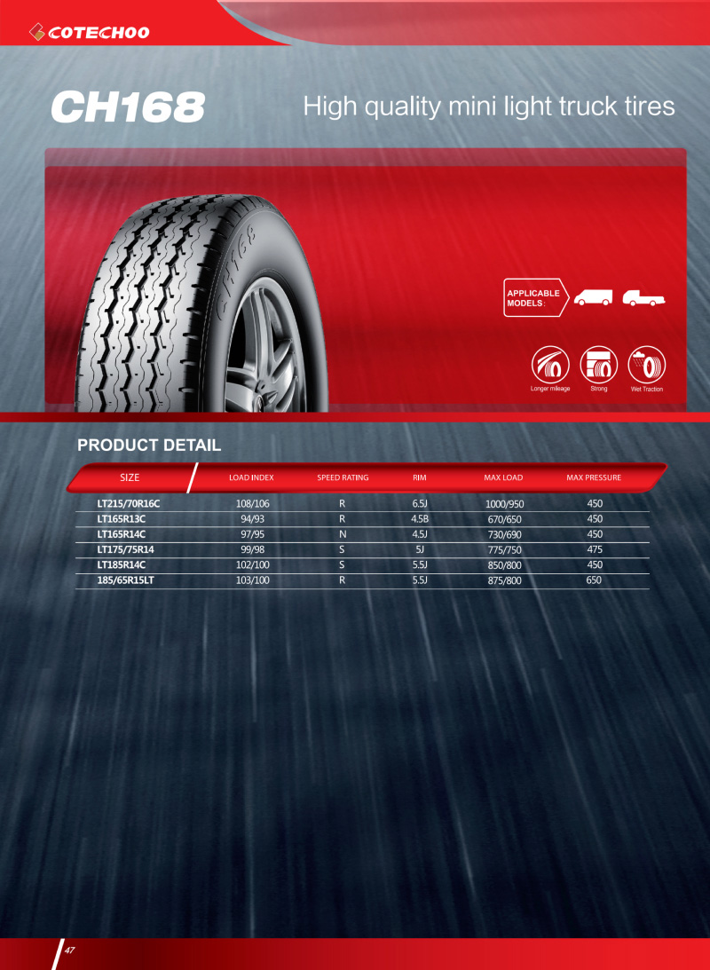 精品輕載花紋曲折的花紋溝槽加雙層胎體結(jié)構(gòu),更強的承載力,深花紋設(shè)計提供卓越的耐久性能。