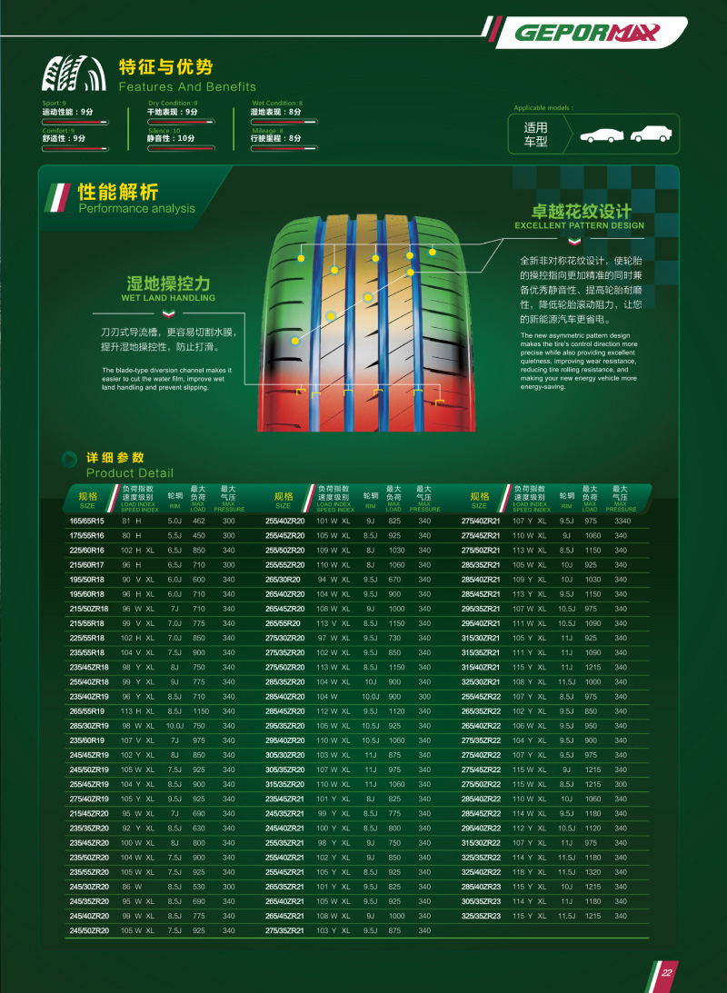 新能源汽車用EV輪胎,全新花紋設(shè)計,具有良好操控性與優(yōu)秀靜音性,低滾阻配方,讓您的新能源汽車更省電。