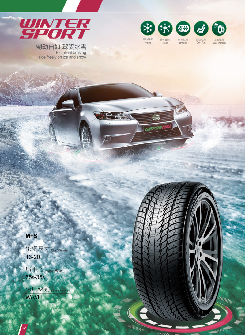 獨特胎面膠料配方及花紋,為輪胎提供良好的牽引力和制動性能,可保證在冬季氣候下的駕駛安全性能。
